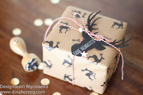 Dina swoje paczuszki ozdobiła wycinankowymi stempelkami z najnowszych świątecznych kolekcji!